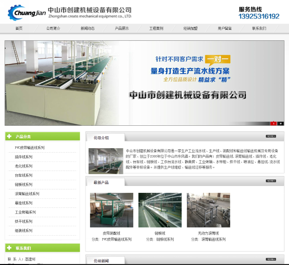 皮帶輸送線網(wǎng)站建設作品賞析之中山市東鳳鎮(zhèn)創(chuàng)建機械設備廠