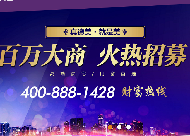 ?? 多年來(lái),真德美門(mén)窗一直致力于打造門(mén)窗裝修的精品工程,在業(yè)界擁有極佳的口碑!真德美門(mén)窗,一個(gè)凝聚生活內(nèi)涵的高端典范,一個(gè)品味生活的代名詞。創(chuàng)新,開(kāi)拓,進(jìn)取是真德美人的靈魂!我們將不斷的開(kāi)拓進(jìn)取,不斷的推陳出新,以最具完美性的產(chǎn)品和優(yōu)質(zhì)的服務(wù)來(lái)回報(bào)廣大客戶(hù)的青睞和厚愛(ài).愿與全國(guó)各地有至于從事高端鋁合金門(mén)窗的有志之士共同開(kāi)發(fā)廣闊的市場(chǎng),等待你們的加入,有了你們的加入,世界會(huì)更加美好。