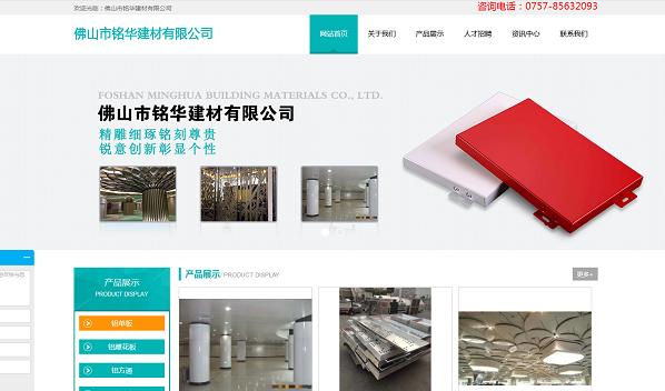 空調(diào)罩網(wǎng)站制作作品賞析之佛山市銘華建材有限公司