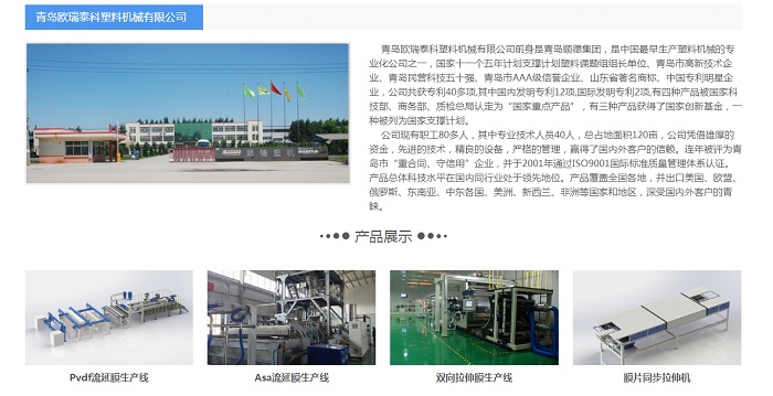 公司現(xiàn)有職工80多人,其中專業(yè)技術(shù)人員40人,總占地面積120畝,公司憑借雄厚的資金,先進(jìn)的技術(shù),精良的設(shè)備,嚴(yán)格的管理,贏得了國(guó)內(nèi)外客戶的信賴。連年被評(píng)為青島市“重合同、守信用”企業(yè),并于2001年通過(guò)ISO9001國(guó)際標(biāo)準(zhǔn)質(zhì)量管理體系認(rèn)證。產(chǎn)品總體科技水平在國(guó)內(nèi)同行業(yè)處于領(lǐng)先地位。產(chǎn)品覆蓋全國(guó)各地,并出口美國(guó)、歐盟、俄羅斯、東南亞、中東各國(guó)、美洲、新西蘭、非洲等國(guó)家和地區(qū),深受國(guó)內(nèi)外客戶的青睞。