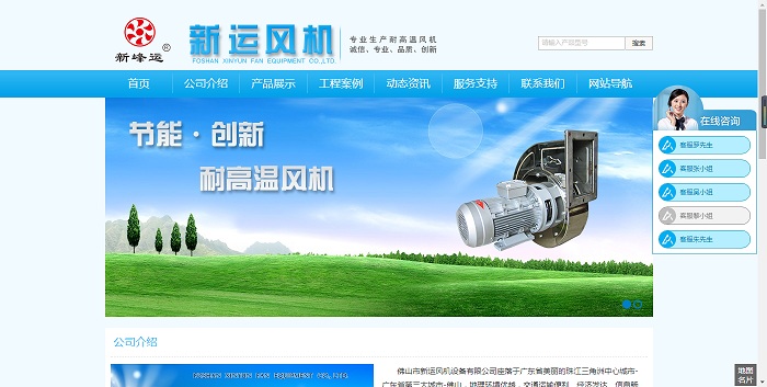 營(yíng)銷型網(wǎng)站訂制作品案例賞析之佛山市新運(yùn)風(fēng)機(jī)設(shè)備有限公司