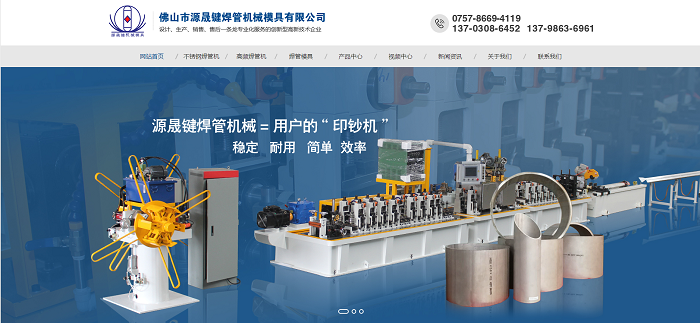 機械模具網站建設案例賞析之佛山市源晟鍵焊管機械模具有限公司