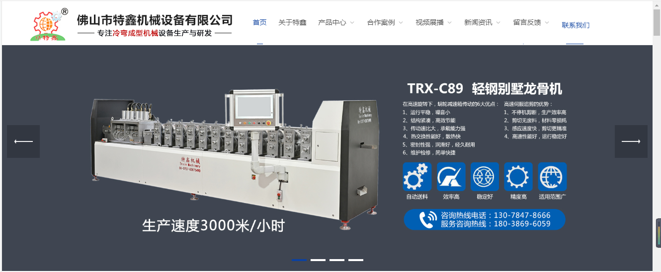龍骨機(jī)網(wǎng)站建設(shè)作品分享之:佛山市特鑫機(jī)械設(shè)備有限公司
