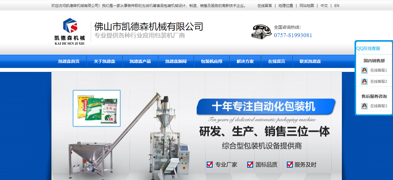 今天讓我們一起來分享一下食品包裝機械網(wǎng)站推廣作品: 佛山市凱德森機械有限公司