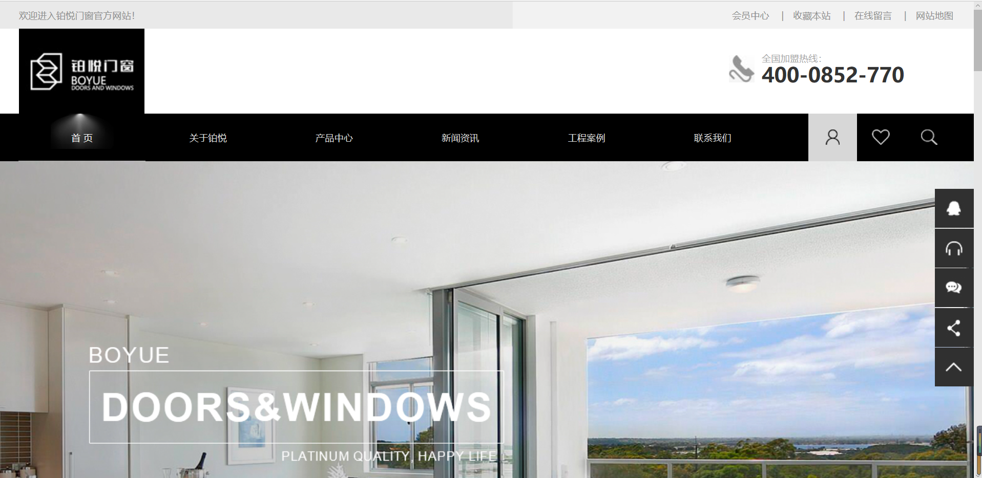 今天讓我們一起來分享一下折疊門網(wǎng)站推廣作品:鉑悅門窗—總部位于中國香港,公司是一家集設(shè)計(jì)、研發(fā)、生產(chǎn)、銷售為一體的現(xiàn)代化鋁門窗企業(yè),2009年初在中國鋁材第一鎮(zhèn)—廣東省佛山市大瀝鎮(zhèn)設(shè)立大陸生產(chǎn)基地。專業(yè)生產(chǎn)各類高端鋁鈦鎂合金中空推拉門、平開門、折疊門、斷橋窗、陽光房、等門窗系列產(chǎn)品。