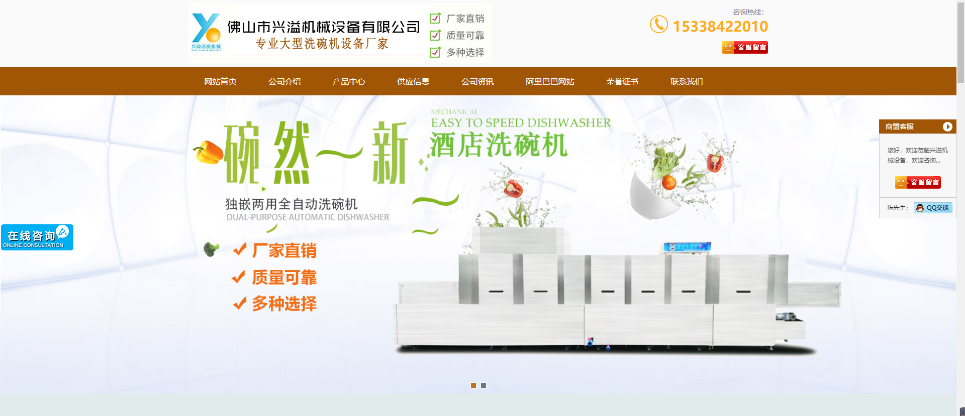 今天讓我們一起來分享一下洗碗機網(wǎng)站建設(shè)作品:佛山市興溢機械設(shè)備有限公司位于與廣州地緣相連、歷史相承、文化同源的佛山市。具體地址是廣東省佛山市順德區(qū)新熹北二橫路。主要經(jīng)營專業(yè):廣州洗碗機,洗碗機,洗碗機廠家,酒店洗碗機,全自動洗碗機,商用洗碗機價格,食堂洗碗機,產(chǎn)品行銷全國各地,現(xiàn)已擁有各類機械加工設(shè)備,能夠滿足不同層次用戶的需要。自創(chuàng)辦以來,我們本著誠信經(jīng)營的原則,積極進取,勇于開拓,充分吸收國內(nèi)外先進技術(shù),集眾家之所長,經(jīng)過多年的努力拼搏。使公司成為國內(nèi)具有競爭力的專業(yè)廠家,公司目前擁有很多優(yōu)xiu的技術(shù)人才,成熟的市場渠道。良好的企業(yè)聲譽。公司在廣泛開展業(yè)務的同時,還定期參加餐消清洗機械及相關(guān)機械的地區(qū)、國內(nèi)展覽會、技術(shù)交流會議及推廣會。我公司在洗碗機械的制造領(lǐng)域有十分豐富的實踐經(jīng)驗并瞄準市場和跟蹤世界先進技術(shù)水平,依靠完善的管理體系和售后服務,以誠實、守信、穩(wěn)健的態(tài)度,以質(zhì)量可靠價格切實、合理的產(chǎn)品,力爭讓廣大客戶對我們的產(chǎn)品滿意。 本公司所有洗碗機包安裝調(diào)試售后、以及老設(shè)備的升級改裝服務,設(shè)備的以舊換新都可承接,歡迎新老顧客來電咨詢和實地考察。將以“優(yōu)質(zhì),誠信”為宗旨,向您提供滿意的產(chǎn)品,完善的服務。竭誠歡迎您的惠顧。