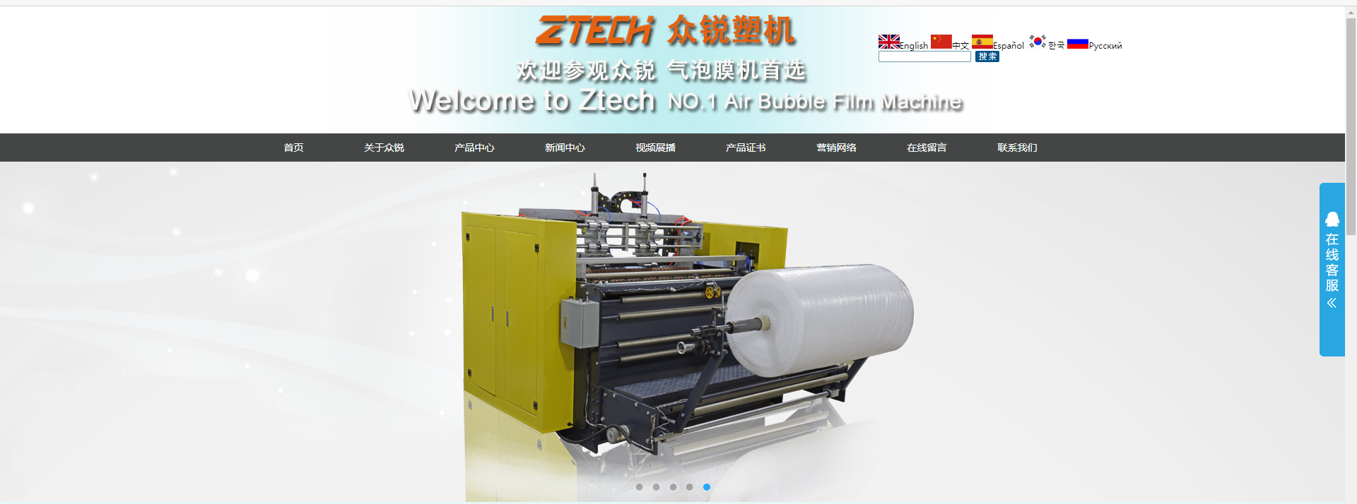 今天讓我們一起來分享一下氣泡膜機網(wǎng)站建設(shè)案例: 佛山市順德區(qū)眾銳塑料機械制造有限公司是專注于“優(yōu)質(zhì)氣泡膜”專用機械設(shè)備的設(shè)計、研發(fā)、生產(chǎn)、銷售及服務(wù)的高新技術(shù)企業(yè)。眾銳公司位于廣東省佛山市順德區(qū)“中國木工機械重鎮(zhèn)”倫教鎮(zhèn)(國家級高新技術(shù)機械鎮(zhèn)),以2層氣泡膜機、3層氣泡膜機、5層氣泡鋁模機、7層氣泡鋁模機、牛皮紙(共擠膜)氣泡信封機、氣泡膜(珍珠棉)制袋機等塑料機械為主導(dǎo)產(chǎn)品。