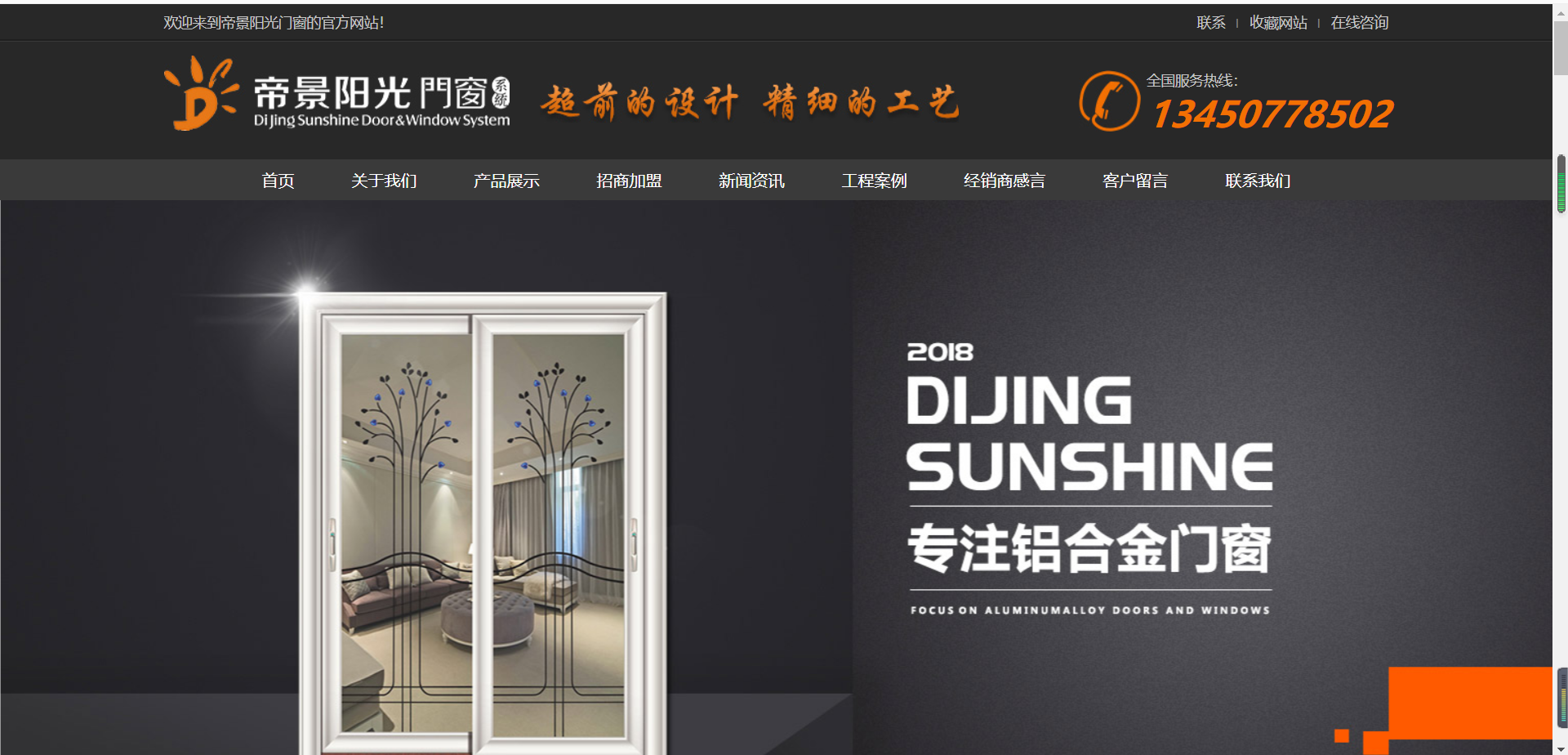 今天讓我們一起來分享一下鋁合金裝飾門網(wǎng)站建設作品:佛山市大好景門業(yè)有限公司是一家集鋁合金裝飾門開發(fā)、生產(chǎn)、銷售為一體的綜合性企業(yè),擁有一批強有力的生產(chǎn)技術人員及雄厚的綜合開發(fā)能力,旗下品牌為帝景陽光門窗。公司主要生產(chǎn)各類高檔至尊/尊貴/尊雅/金樽重型推拉門、重型大折疊門、時尚凌弧/圓弧豪華/經(jīng)典吊趟推拉門、時尚凌弧平開門、圓弧豪華平開、窗/陽光房、雨棚/車棚等系列。公司嚴格執(zhí)行ISO9001-2000國際標準貫穿至每一個環(huán)節(jié)。產(chǎn)品采用國際先進噴涂技術及全套德國進口設備,確保產(chǎn)品具有環(huán)保、耐用、防潮、耐腐蝕、不褪色、隔音好的特點。一流的表面處理、先進的設備、超前的設計,精細的工藝、結合流光溢彩的玻璃工藝,無論款式、性能還是質量均屬上乘,經(jīng)久耐用的獨特優(yōu)勢是現(xiàn)代家居裝潢中真正的綠色環(huán)保產(chǎn)品。