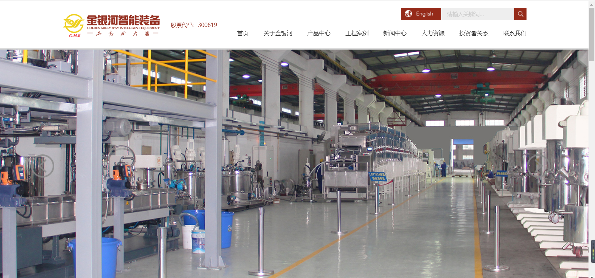 今天讓我們一起來分享一下全自動生產(chǎn)線網(wǎng)站建設(shè)案例:佛山市金銀河智能裝備股份有限公司是一家專業(yè)從事輸送計量、混合、分散、反應(yīng)、灌裝、包裝、在線檢測、中央控制等智能化系統(tǒng)研發(fā)、設(shè)計、生產(chǎn)的全球制造及服務(wù)供應(yīng)商,產(chǎn)品主要應(yīng)用于有機硅及高分子化合物、鋰電池行業(yè)、生物化學(xué)等領(lǐng)域。公司成立于2002年,位于佛山市國家高新區(qū)三水科技工業(yè)園,擁有大型現(xiàn)代化生產(chǎn)廠房及高精度加工裝備。公司于2017年在深圳創(chuàng)業(yè)板上市,股票代碼:300619。