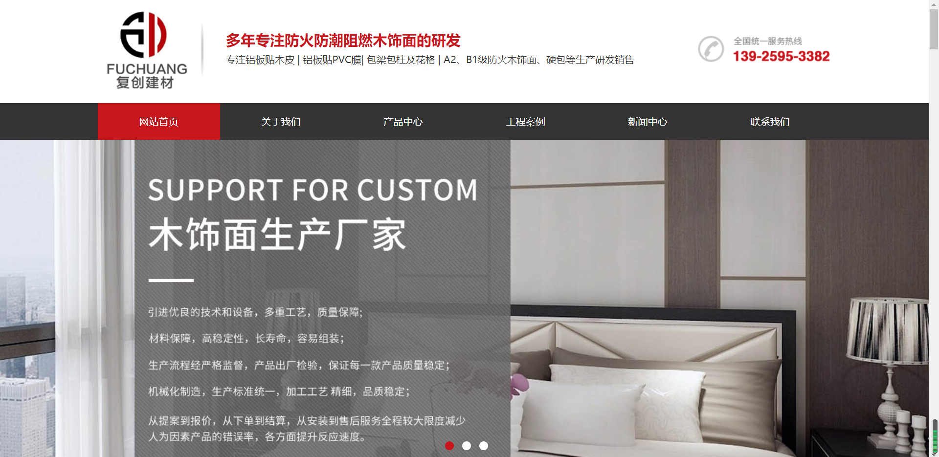 今天讓我們一起來分享一下木飾面網(wǎng)站推廣作品:佛山市復(fù)創(chuàng)建材有限公司(簡稱復(fù)創(chuàng)建材)是一家集研發(fā),設(shè)計,生產(chǎn)銷售單鋁板貼天然木皮,防火板,皮革布藝等飾面材料系列,鋁板飾面復(fù)合阻燃板材,鋁蜂窩飾面板及酒店別墅,船用家具的生產(chǎn)企業(yè)。復(fù)創(chuàng)建材堅守以人為本,以誠為先,以創(chuàng)造價值為榮的核心理念,構(gòu)建優(yōu)秀管理平臺,以技術(shù)創(chuàng)新,綠色環(huán)保,品質(zhì)優(yōu)秀,成本優(yōu)越的產(chǎn)品,以精,準(zhǔn),快的服務(wù)形成復(fù)創(chuàng)強大的核心競爭力,為復(fù)創(chuàng)的快速發(fā)展奠定堅實基礎(chǔ)。
