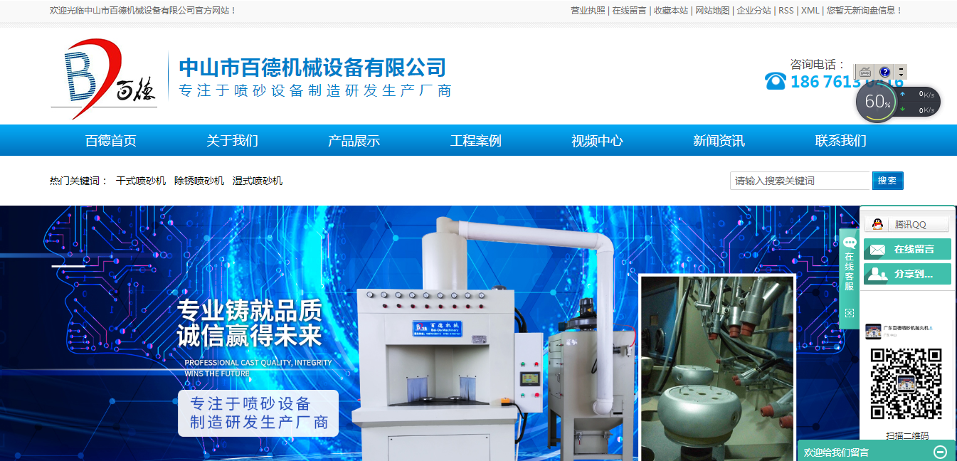 今日分享濕式噴砂機(jī)網(wǎng)站建設(shè)案例:中山市百德機(jī)械設(shè)備有限公司位于經(jīng)濟(jì)發(fā)達(dá)的沿海城市珠三角城市--中山,為廣東及全國(guó)各地專業(yè)從事各種類型噴砂設(shè)備的研發(fā)、生產(chǎn)和設(shè)計(jì),提供齊全的表面處理材料的企業(yè)。改進(jìn)創(chuàng)新,精益求精,全心全意為客戶服務(wù)是我們的經(jīng)營(yíng)理念。