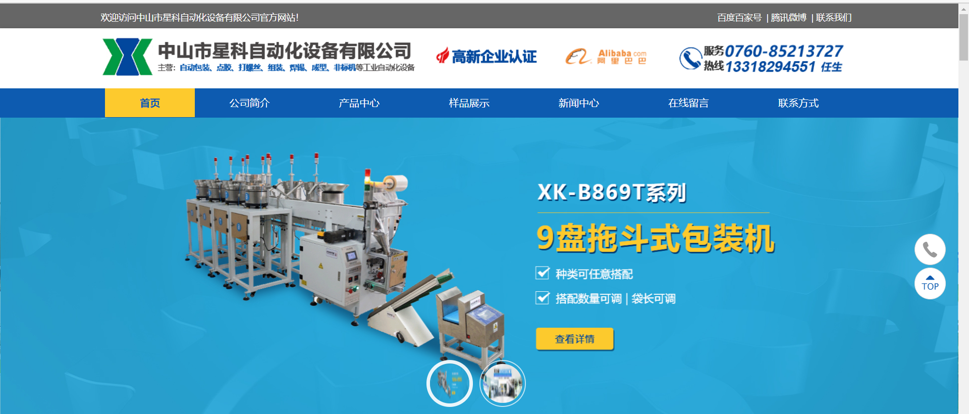 今天讓我我們一起來(lái)分享一下包裝機(jī)網(wǎng)站推廣作品: 中山市星科自動(dòng)化屹立于國(guó)家高新技術(shù)產(chǎn)業(yè)區(qū)------火炬開(kāi)發(fā)區(qū),位于珠三角洲西南部,毗鄰佛山、珠海、東莞、深圳、廣州。廣珠澳高速、輕軌橫貫全境,交通便利。