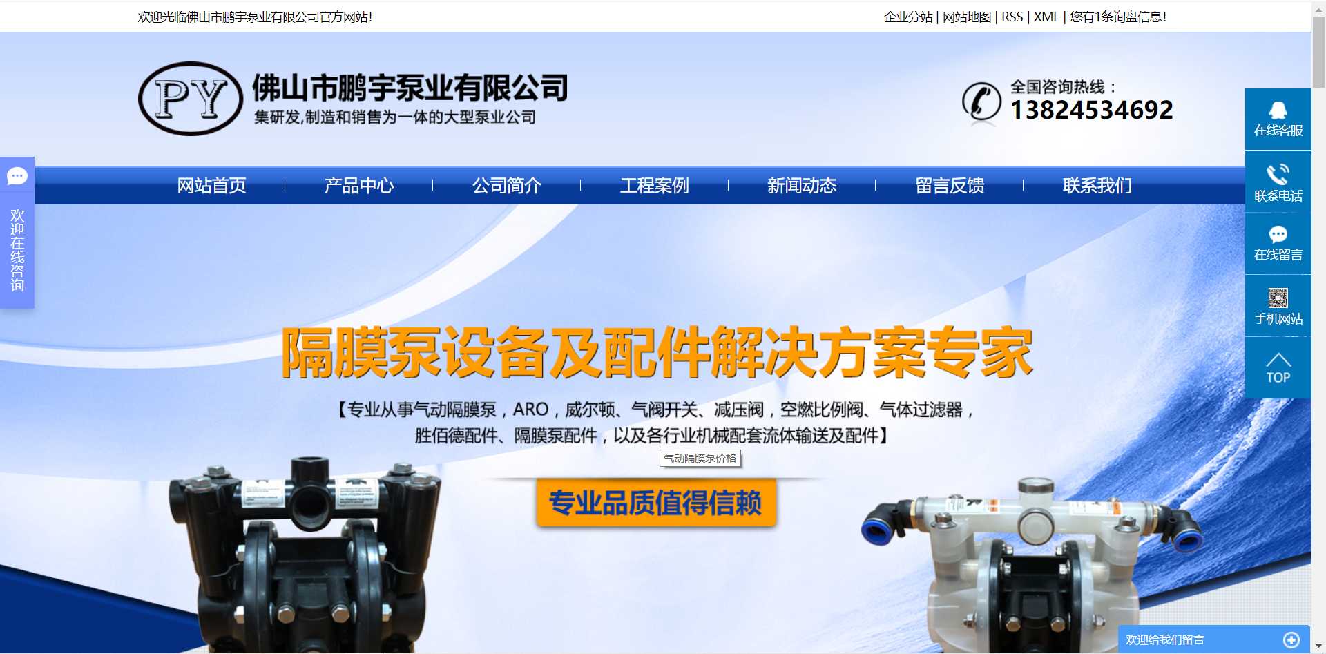 隔膜泵設(shè)備網(wǎng)站建設(shè)案例分享之佛山市鵬宇泵業(yè)有限公司
