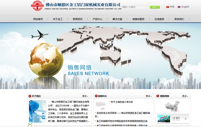 鋁門窗網(wǎng)頁設(shè)計作品賞析之佛山市順德區(qū)金工鋁門窗機械實業(yè)有限公司