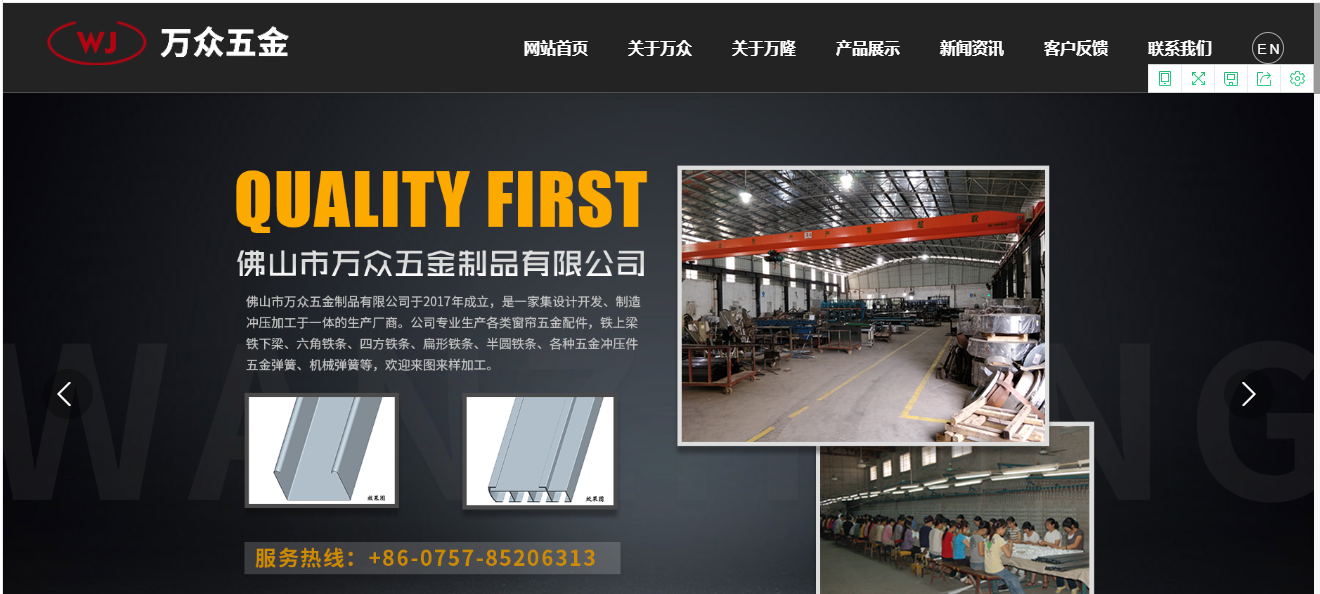 今天讓我們一起來分享一下窗簾五金配件網(wǎng)頁(yè)設(shè)計(jì)作品: 佛山市萬眾五金制品有限公司于2017年成立,是一家集設(shè)計(jì)開發(fā)、制造、沖壓加工于一體的生產(chǎn)廠商。