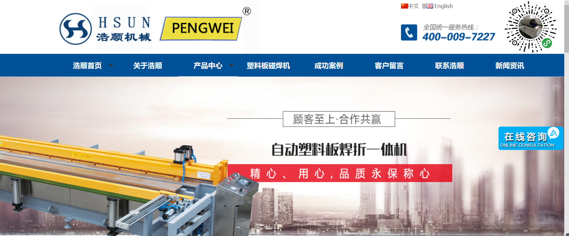 今天讓我們一起來(lái)分享一下碰焊機(jī)網(wǎng)站建設(shè)作品: 佛山市南海浩順機(jī)械設(shè)備制造有限公司是一家集研發(fā)、生產(chǎn)、銷(xiāo)售于一體的專業(yè)型企業(yè),主要生產(chǎn)全自動(dòng)塑料板碰焊機(jī)、全自動(dòng)塑料板折彎?rùn)C(jī)、全自動(dòng)塑料板開(kāi)料機(jī)等塑料加工設(shè)備。產(chǎn)品廣泛應(yīng)用于環(huán)保設(shè)備行業(yè),電鍍?cè)O(shè)備行業(yè)、化工容器行業(yè)、PCB設(shè)備行業(yè)、實(shí)驗(yàn)室設(shè)備行業(yè)、水產(chǎn)行業(yè)及所有加工塑料板材的各行各業(yè)。
