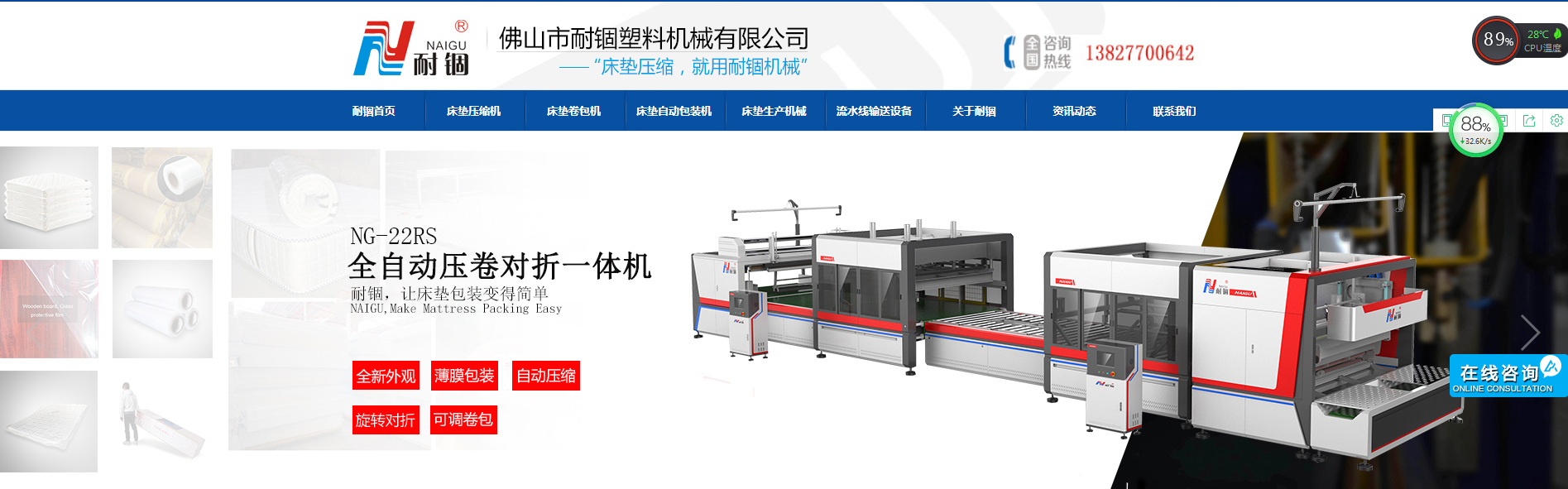 佛山市耐錮塑料機械有限公司成立于2004年,經(jīng)過多年改革升級,前身名為佛山市耐錮塑料包裝材料廠2016年更名為佛山市耐錮塑料機械有限公司,現(xiàn)占地面積20000多平米,擁有10余人的研發(fā)團隊,專業(yè)研發(fā)與生產(chǎn)全自動床墊壓縮包裝設備、床墊卷包機械、床墊印刷包裝膜、床墊壓縮包裝袋,PVC/PE薄膜等多種產(chǎn)品,為床墊企業(yè)打造高競爭力的包裝而努力創(chuàng)新。
