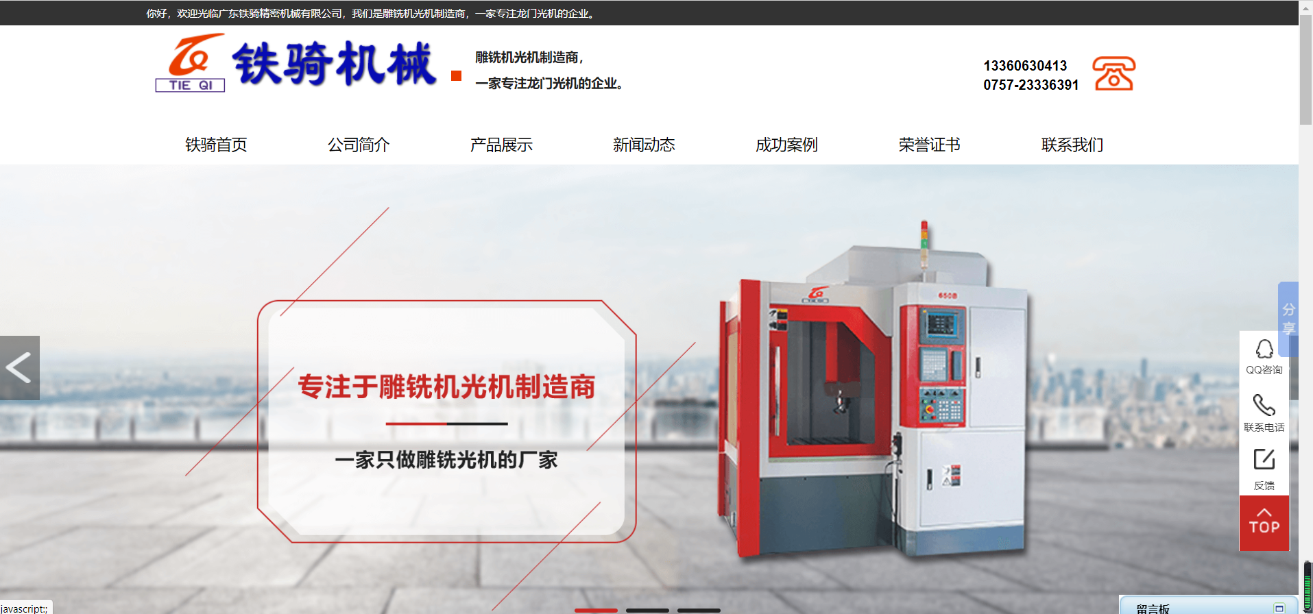 廣東鐵騎精密機(jī)械有限公司:專注于雕銑機(jī)光機(jī),龍門加工中心光機(jī)制造商。始創(chuàng)于 2006 年,占地 35 畝。我們是一家具專業(yè)設(shè)計(jì)開發(fā)、生產(chǎn)制造精密雕銑機(jī)光機(jī), 龍門加工中心光機(jī)的生產(chǎn)廠家。雕銑機(jī)光機(jī)月生產(chǎn)銷售量到達(dá) 350 臺(tái),龍門加工中心光機(jī)月生產(chǎn)銷售量達(dá) 50 臺(tái)。鐵騎精密機(jī)械擁有自己的設(shè)計(jì)開發(fā)隊(duì)伍、機(jī)械加工、組裝等一體化服務(wù),公司堅(jiān)持以人為本,視質(zhì)量如生命的方針,以市場為導(dǎo)向,以用戶需求為核心。該系列產(chǎn)品造型美觀、性能穩(wěn)定、質(zhì)量可靠、操作方便,已達(dá)到國內(nèi)先進(jìn)水平。鐵騎緊緊圍繞“質(zhì)量、服務(wù)、創(chuàng)新、誠信”的經(jīng)營理念,不斷提高產(chǎn)品的科技含量。憑著良好的信用、優(yōu)良的服務(wù)與多家企業(yè)建立了長期的合作關(guān)系。歡迎廣大新老客戶蒞臨 !