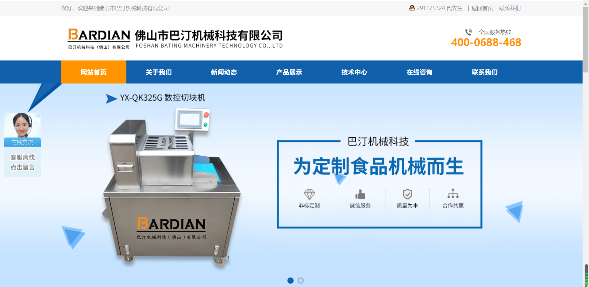 食品加工設備網(wǎng)站建設哪家好呢?今天讓我們一起來分享一下食品加工設備網(wǎng)站建設案例: 佛山市巴汀機械科技有限公司