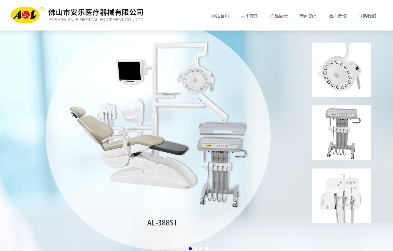 今天和大家一起賞析牙科綜合治療機(jī)網(wǎng)站設(shè)計(jì)案例之佛山市安樂(lè)醫(yī)療器械有限公司。