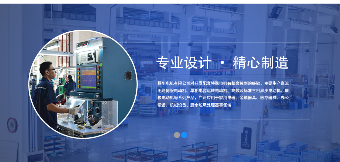 振華電機(jī)有限公司對開發(fā)配套特殊電機(jī)有整套獨(dú)到的經(jīng)驗(yàn),主要生產(chǎn)直流無刷伺服電動機(jī)、單相電容運(yùn)轉(zhuǎn)電動機(jī)、高效及標(biāo)準(zhǔn)三相異步電動機(jī)、罩極電動機(jī)等系列產(chǎn)品,廣泛應(yīng)用于家用電器、金融器具、醫(yī)療器械、辦公設(shè)備、機(jī)械設(shè)備、廚余垃圾處理器等領(lǐng)域,有較強(qiáng)的獨(dú)立研發(fā)和生產(chǎn)能力,目前可年產(chǎn)500萬臺各種類型電機(jī),品種齊全,效率高、噪音低、振動小、使用壽命長,除了行銷大陸、香港、還遠(yuǎn)銷歐美等地,并以專注質(zhì)量與創(chuàng)新贏得國內(nèi)外眾多客戶的歡迎和信賴。