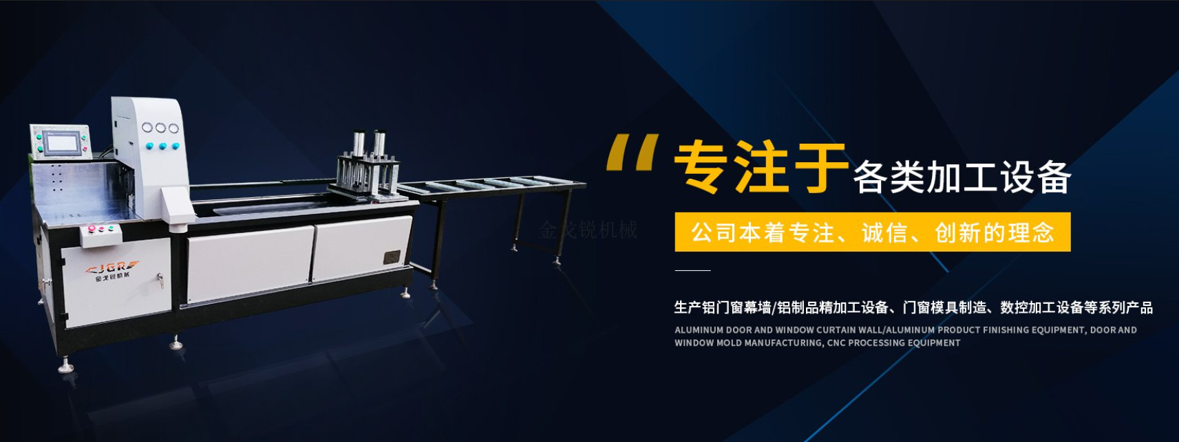 佛山市金戈銳機(jī)械設(shè)備有限公司是一家專門研發(fā)、制造、銷售為一體的綜合性的企業(yè),主要生產(chǎn):鋁門窗幕墻加工設(shè)備,鋁制品精加工設(shè)備,門窗模具制造,數(shù)控加工設(shè)備等系列產(chǎn)品。本著專注、誠(chéng)信、誠(chéng)實(shí)的理念。本公司開發(fā)出的設(shè)備受到了廣大客戶的一致好評(píng)。經(jīng)過(guò)金戈銳公司全體員工的不懈努力和創(chuàng)新,產(chǎn)品更加系列化,基于市場(chǎng)的實(shí)際情況,我們綜合國(guó)內(nèi)外的技術(shù),并生產(chǎn)出節(jié)能、維護(hù)簡(jiǎn)單、使用容易、性價(jià)比高的產(chǎn)品,使用戶真正能買到質(zhì)量穩(wěn)定的生產(chǎn)工具,從而提高企業(yè)的加工水平和市場(chǎng)競(jìng)爭(zhēng)力。