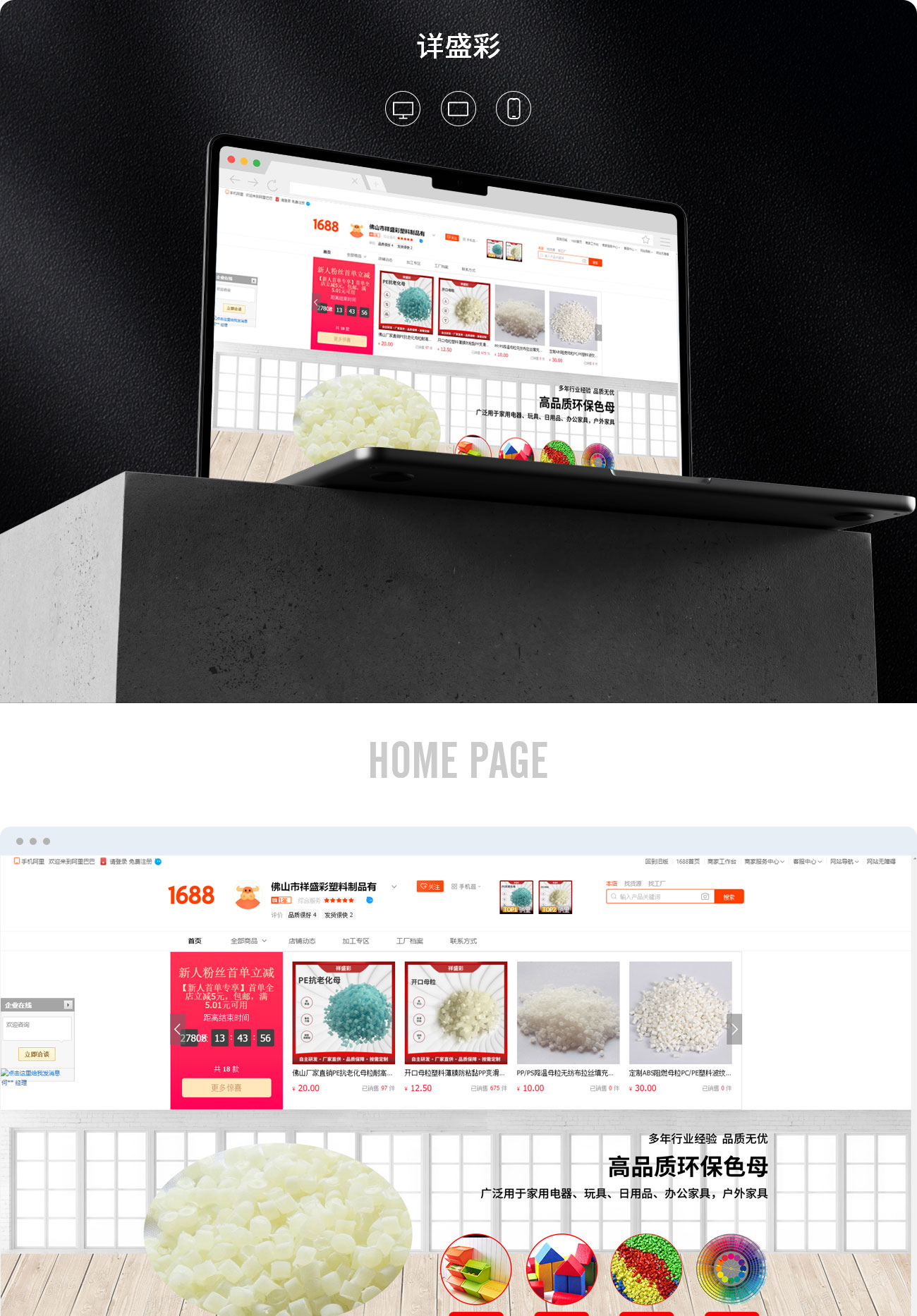 店鋪設(shè)計(jì)采用扁平風(fēng)進(jìn)行設(shè)計(jì),畫面干凈,具有詳盛彩產(chǎn)品自身特色,整體網(wǎng)站的色彩以紅色和奶灰色進(jìn)行搭配,突出產(chǎn)品質(zhì)感,加深用戶對產(chǎn)品的印象。