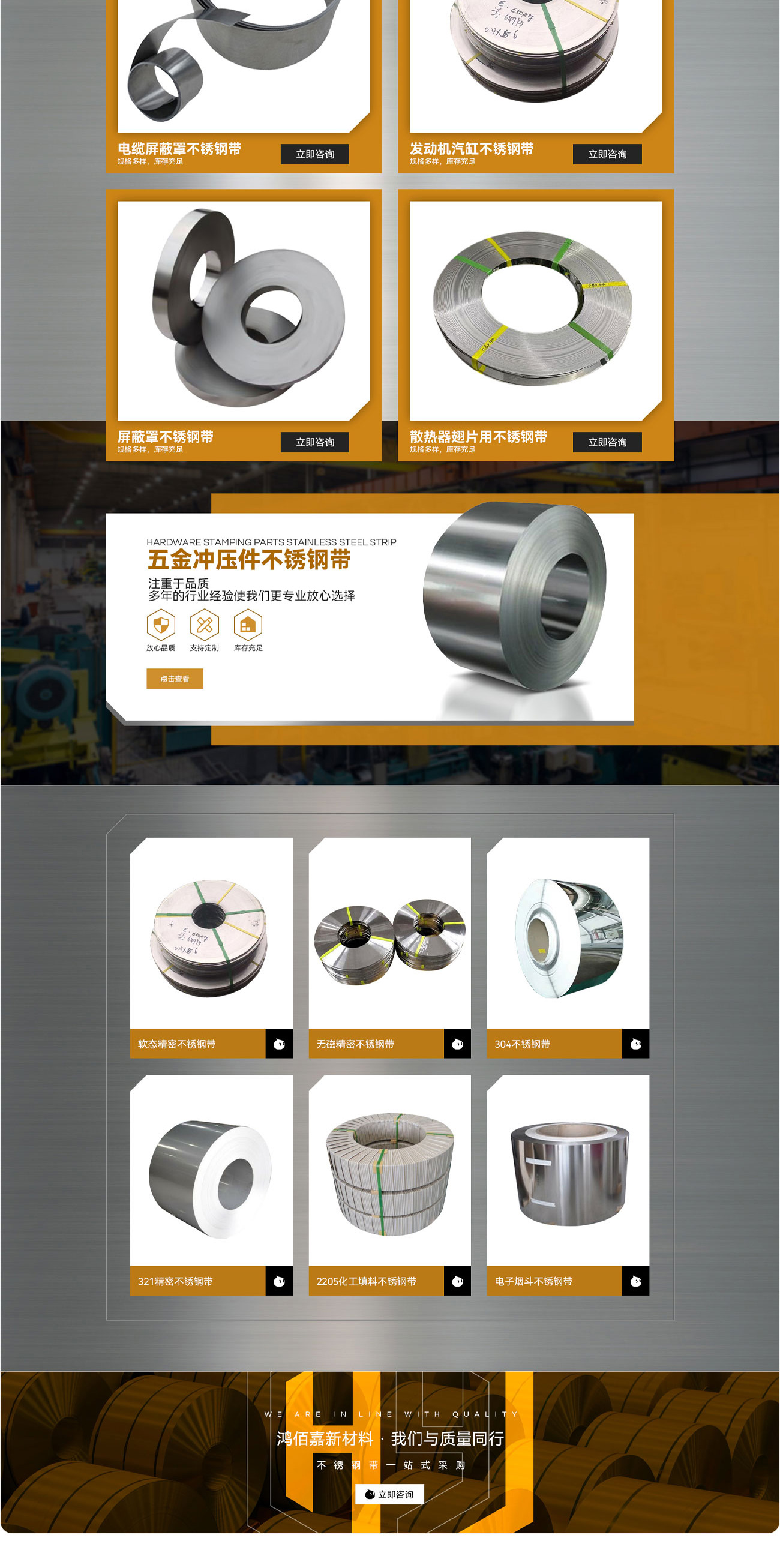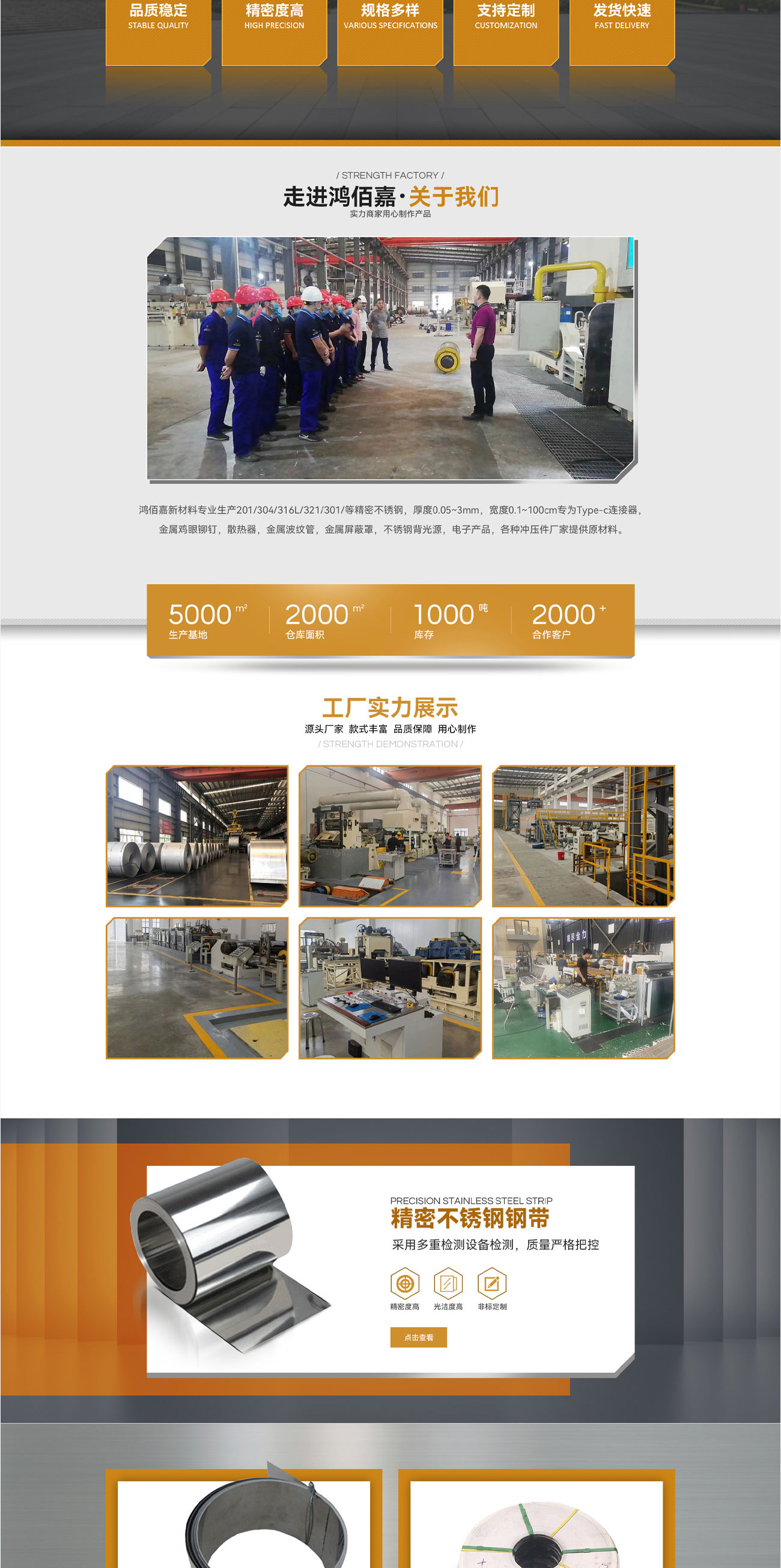 鴻佰嘉新材料專業(yè)生產(chǎn)201/304/316L/321/301/等精密不銹鋼,厚度0.05~3mm,寬度0.1~100cm專為T(mén)ype-c連接器,金屬雞眼鉚釘,散熱器,金屬波紋管,金屬屏蔽罩,不銹鋼背光源,電子產(chǎn)品,各種沖壓件廠家提供原材料。