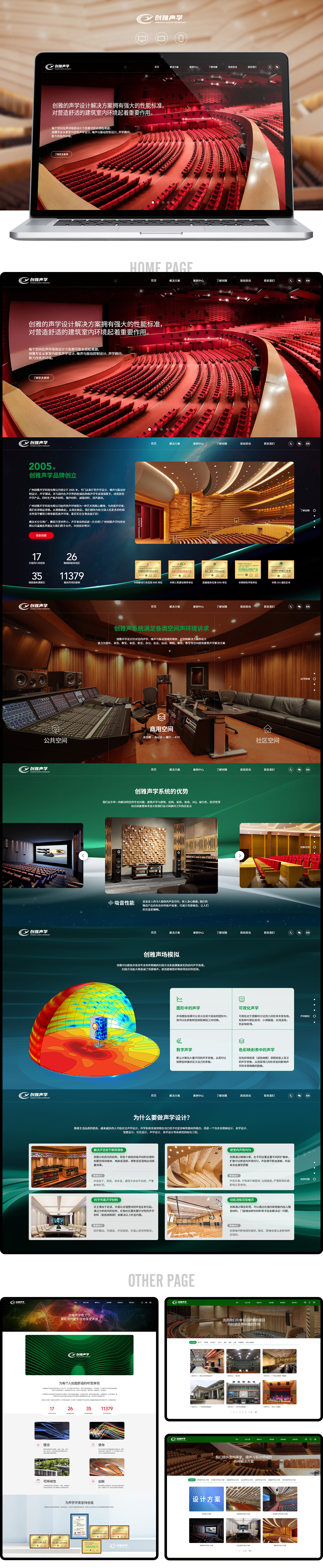創(chuàng)雅網(wǎng)站屬于企業(yè)展示型的,主要體現(xiàn)工程優(yōu)勢,所以首先想到的就是大圖片,便于展示主體,也可以用大視角吸引關(guān)注。為了讓整個頁面更加平易近人,引入部分曲線元素,使畫面看起來柔和親切。