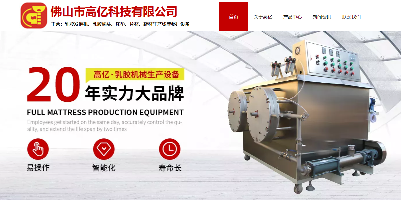 現(xiàn)在和大家一起賞析乳膠機械網(wǎng)站建設(shè)案例之佛山市高億科技有限公司。